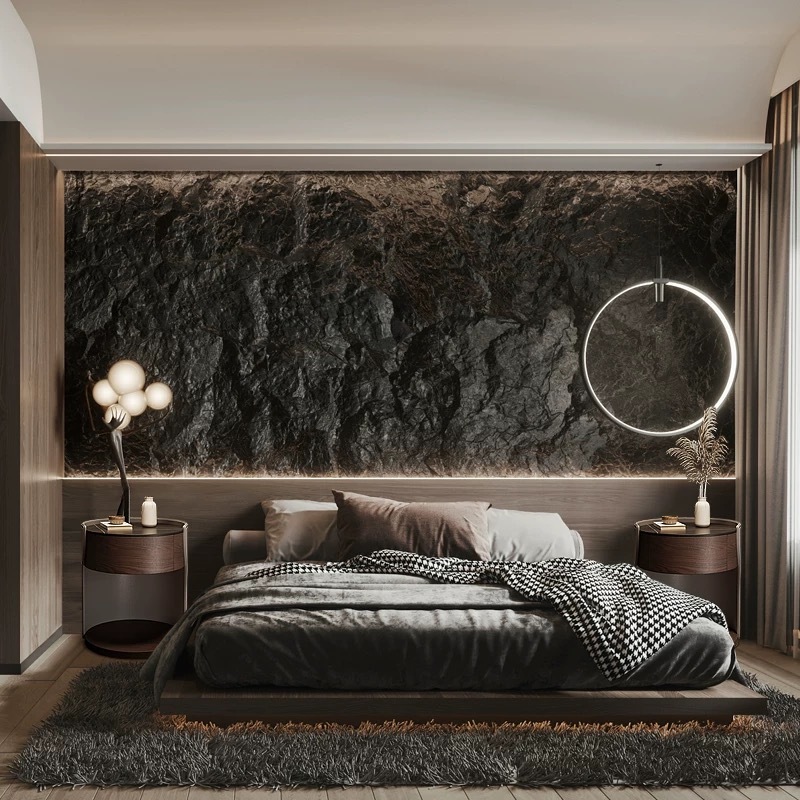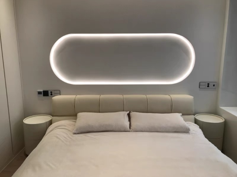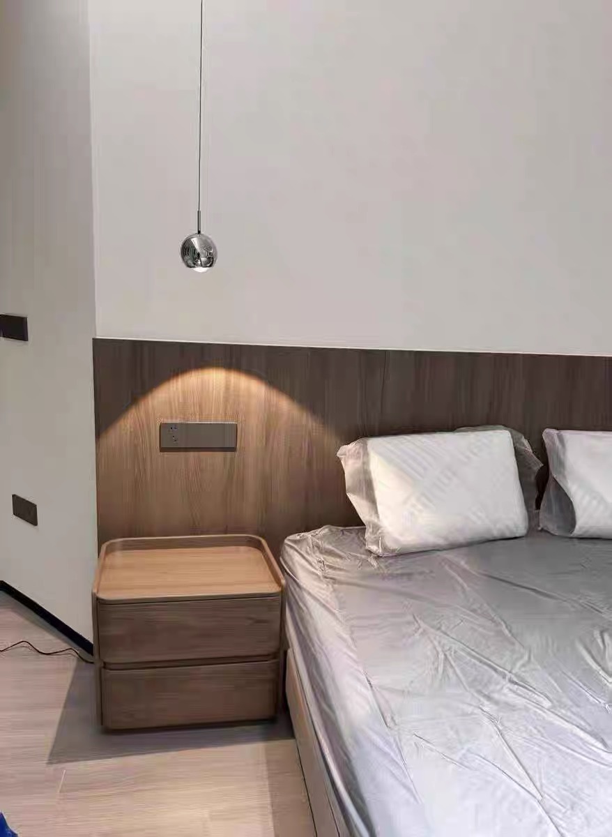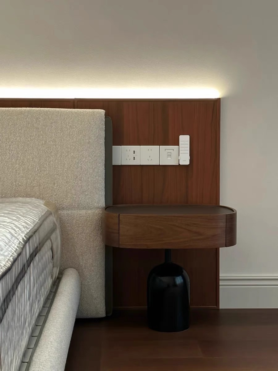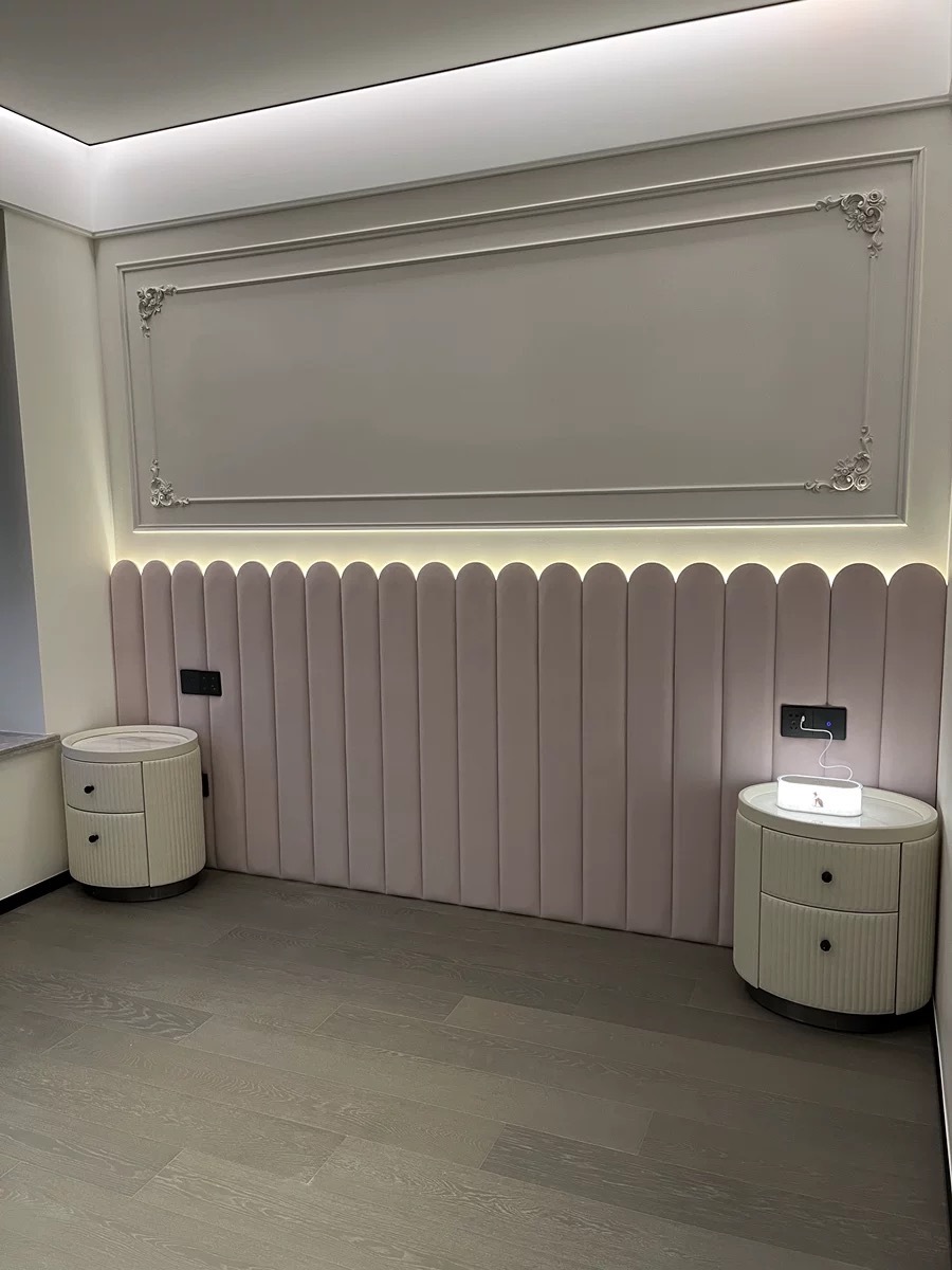 Присылаем дизайн проект или готовое фото комнаты. Должна быть видна зона кровати и около нее (где розетки )