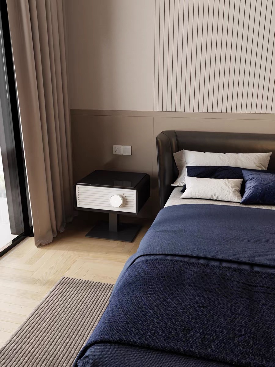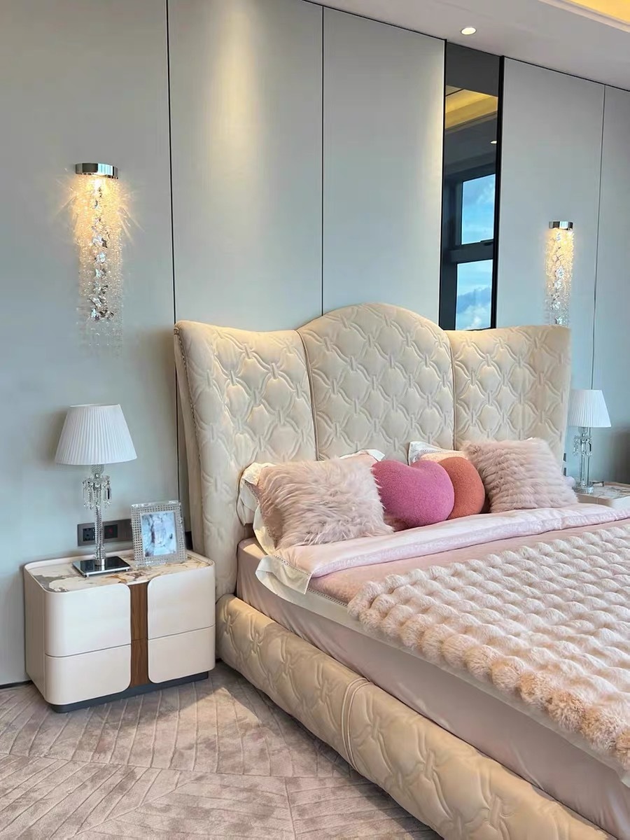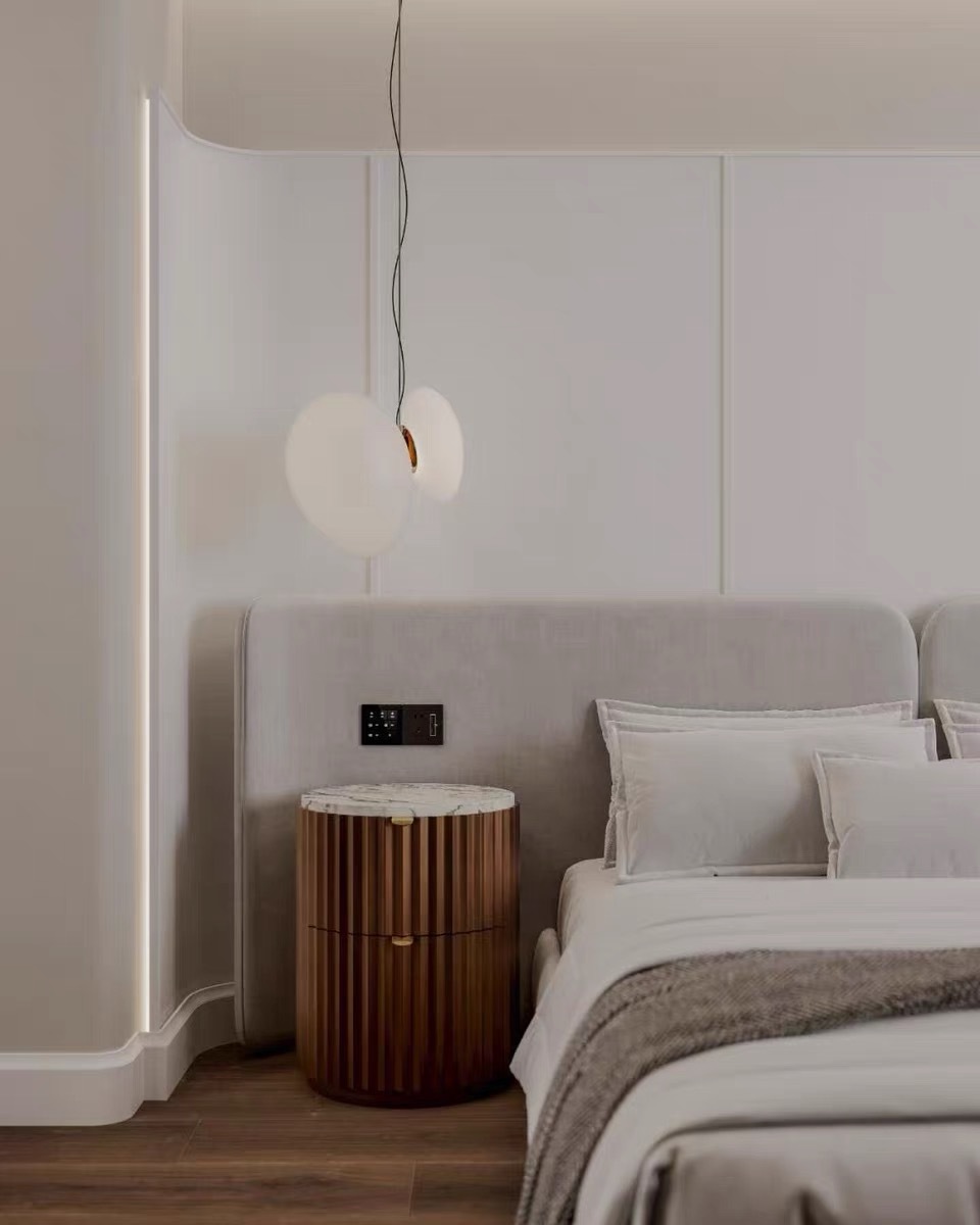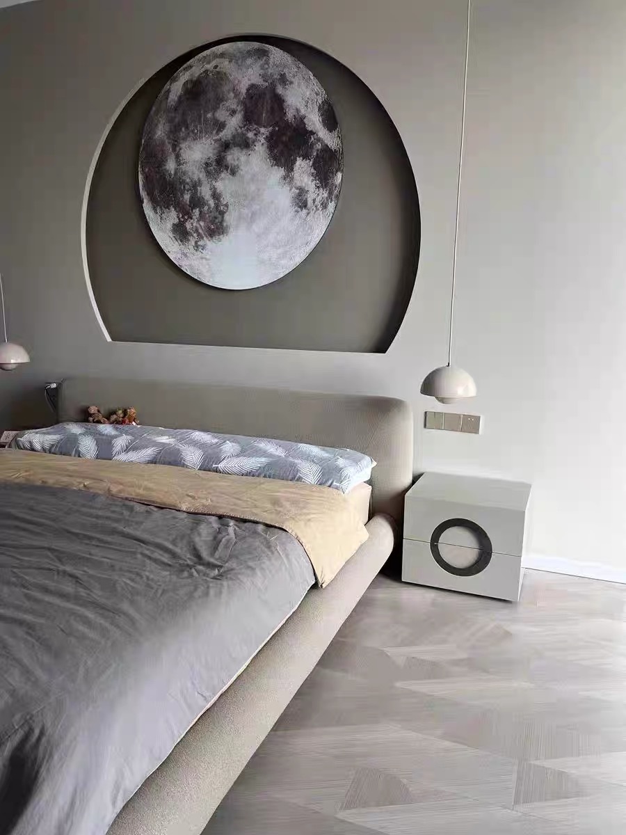 Присылаем дизайн проект или готовое фото комнаты. Должна быть видна зона кровати и около нее (где розетки )