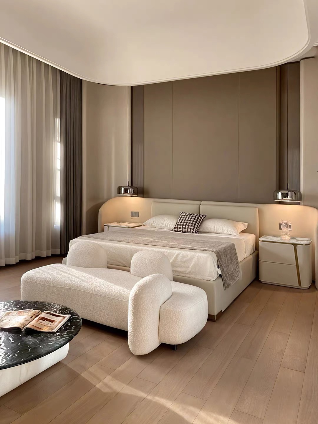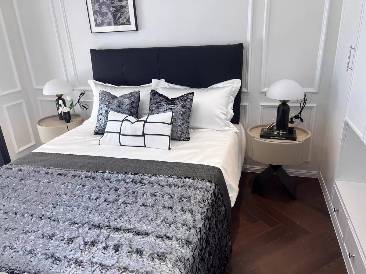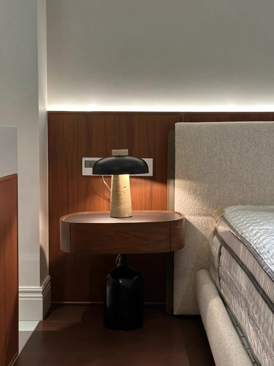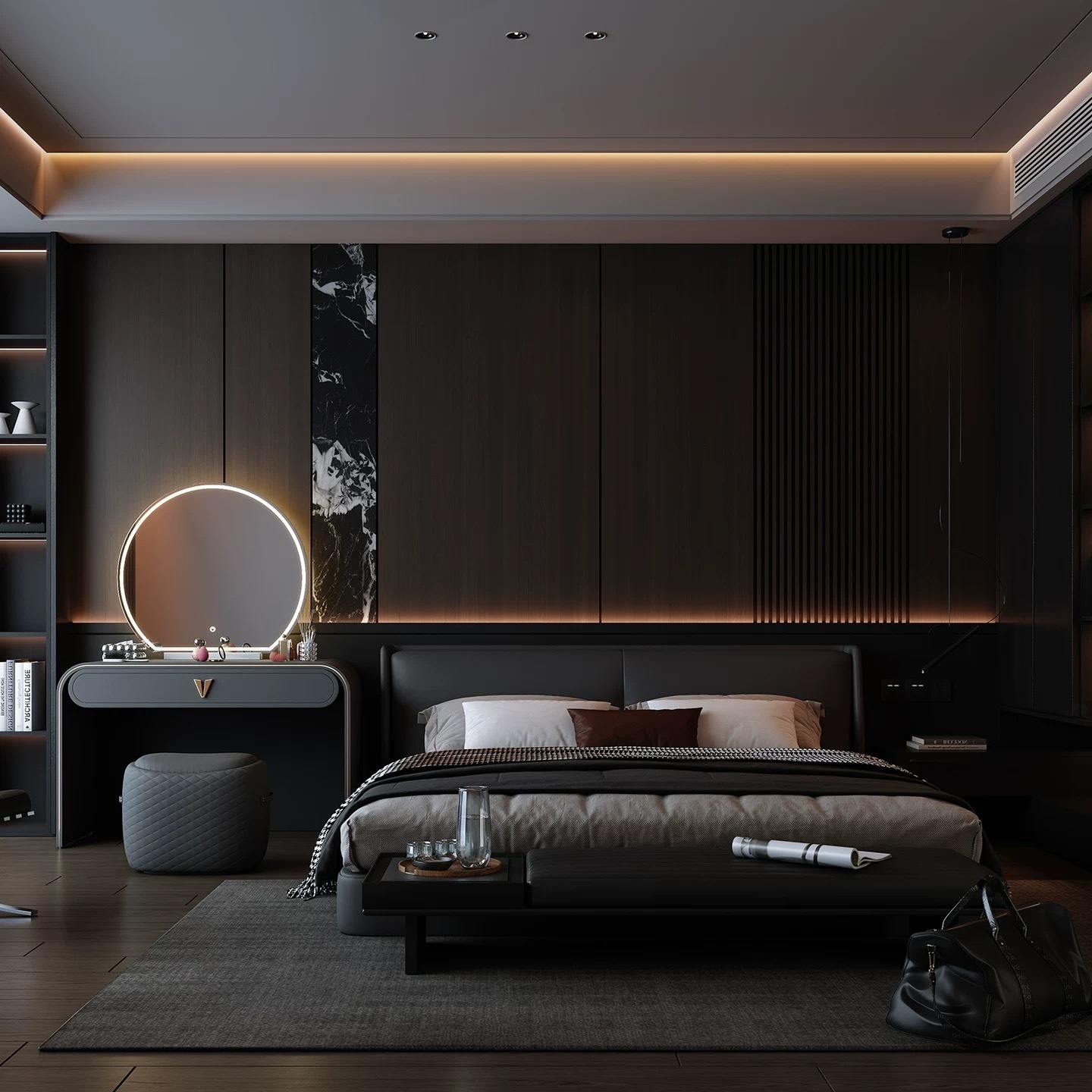 Присылаем дизайн проект или готовое фото комнаты. Должна быть видна зона кровати и около нее (где розетки )